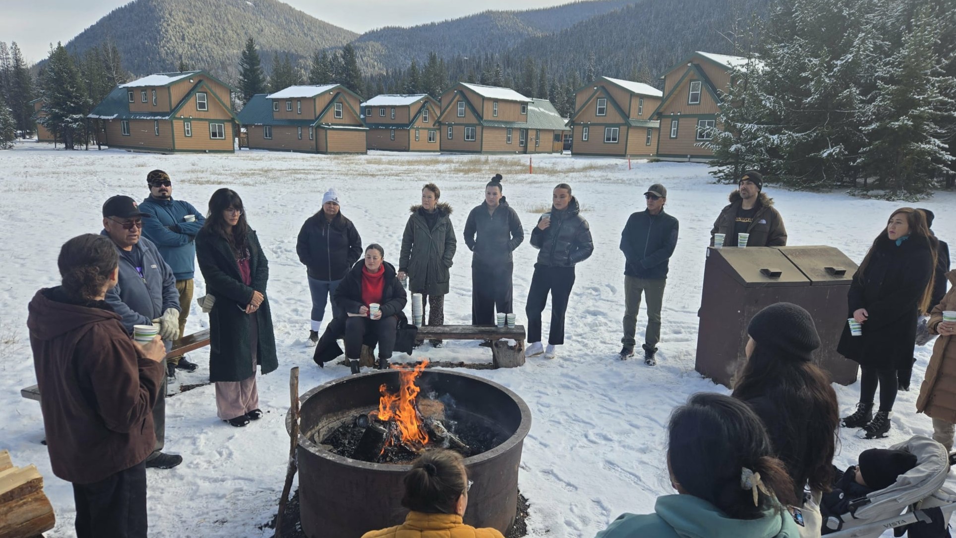 In November we hosted our first retreat of the year with our largest and most diverse Co-Learning cohort yet. All 23 participants were fully engaged in Indigenous Law in Story at Manning Park Resort, located in the North Cascade Mountains in an area that encompasses the headwaters of the Similkameen and Tulameen Rivers. The area is known as saʕtikn in the nsyilxcən language, and connects several Indigenous peoples, including the sməlqmíx / syílx, Nlaka’pamux, upper Skagit and Stó:lō.
