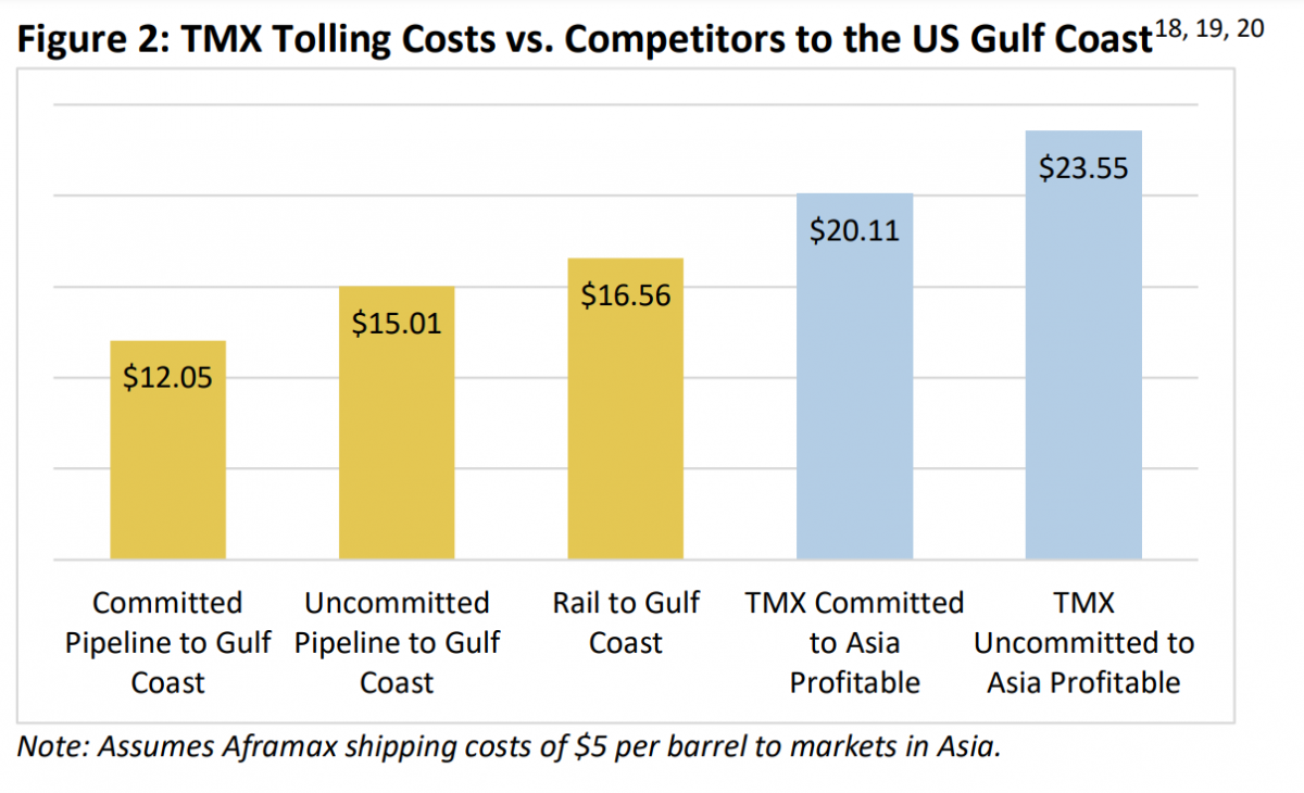 - TMX would have to double tolls in order to be profitable, but that would make it much more expensive than other pipelines and even rail.