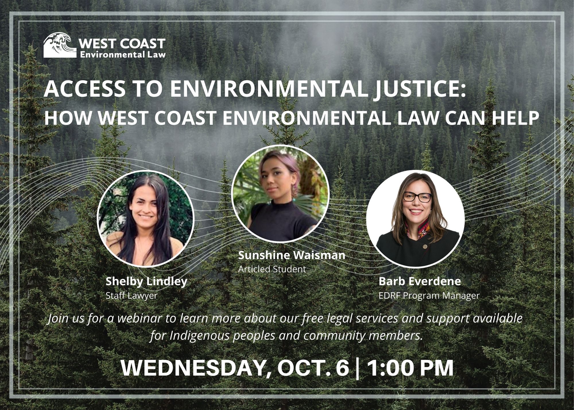 In this one-hour webinar, we’ll discuss how we can support Indigenous peoples, organizations and individuals with free legal information and advice through our Summary Legal Advice program, as well as the funding we can provide to hire a lawyer or an expert through Environmental Dispute Resolution Funding.