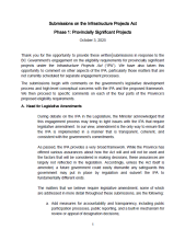 This document outlines our joint response to the BC Government’s engagement on the eligibility requirements for provincially significant projects under the Infrastructure Projects Act (“IPA”). We have also taken this opportunity to comment on other aspects of the IPA, particularly those matters that are not currently scheduled for separate engagement processes.