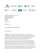 A coalition of Canada’s leading environmental, nature and climate organizations sent an open letter to Prime Minister Mark Carney and key Cabinet ministers calling on the federal government to adopt seven clear, transparent criteria for determining which projects are truly in the national interest under the Building Canada Act (Bill C-5).